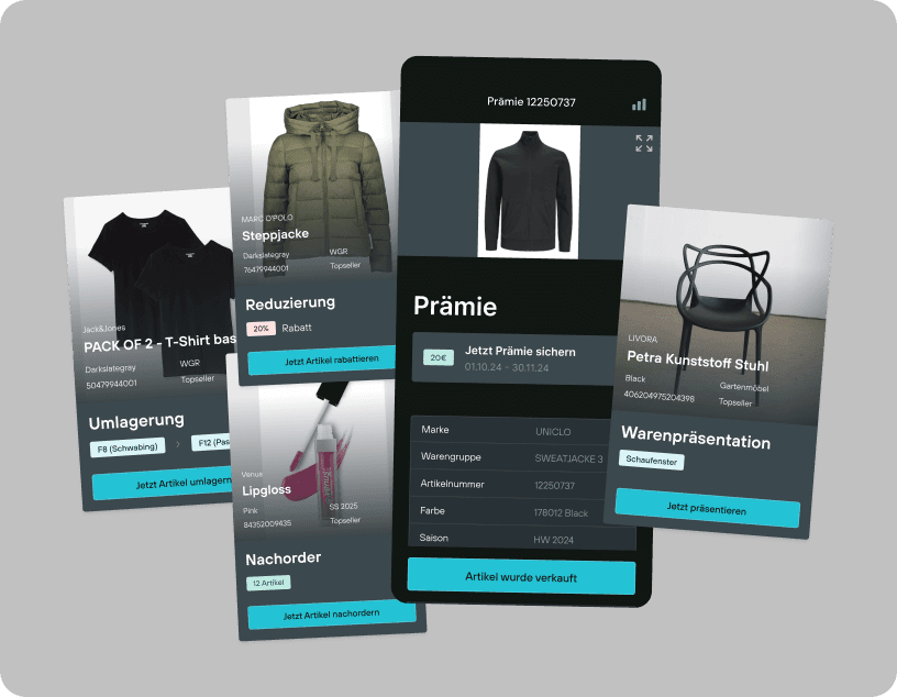 AIVEE übersetzt Analysen und Prognosen in konkrete Handlungsempfehlungen – Umlagerung, Reduzierung, Nachorder, Mitarbeiterprämien und Warenpräsentation. Diese können bestätigt, angepasst, verworfen oder mit der KI diskutiert werden.